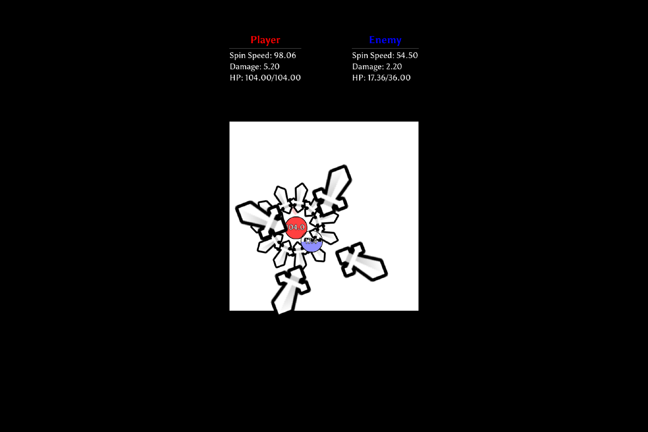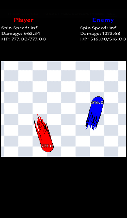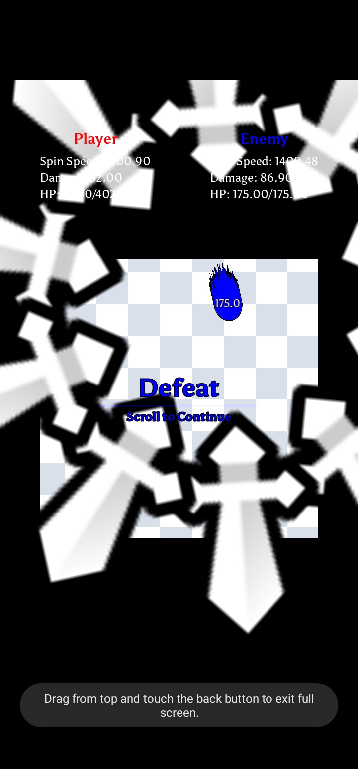 currently in a stalemate, both of our ring of swords are too big to fit in the arena and we've both reached inf spin speed like 30 min ago. (first pic is most current and second pic is from previous point of my run)